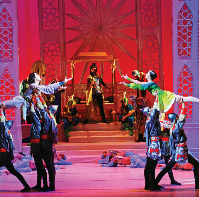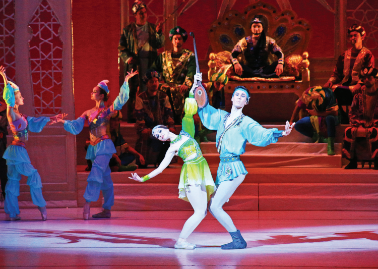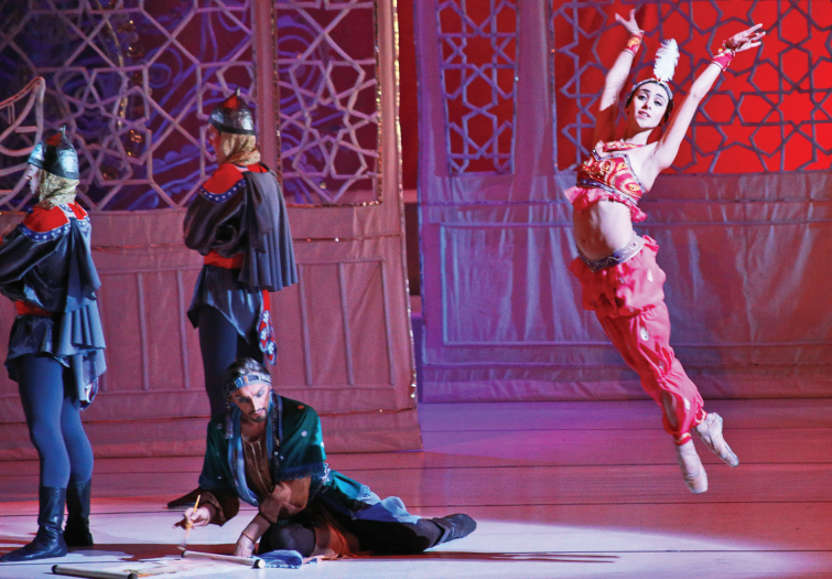 The same can be said of Arif Melikov's music. The combination is unusual, as the audience was able to see in the premiere performances. The originality of the choreographic pattern that is impossible to see in other productions attracts the audience's attention right away. Classical movements here are actively combined with references to acrobatics, which was a serious challenge for the dancers, who had not to forget about the acting game. From this point of view From this point of view, the ballet can be considered one of the most difficult in the Bolshoi's national repertoire. The main part of the Komde dancer is played by two leading soloists, Nadira Khamraeva and Olga Sabirova, and novice Shirin Khasanova in three casts. The emotional image of the musician Modan was convincingly created by Doniyor Khasmanov and Bekzod Akimbayev. The figure of Karashakh (Ulugbek Olimov and Zamir Fazlutov) does not stand out against his background. The leading creative forces of the theater tried to convey all the beauty of the ballet and the greatness of its key idea - love, which is not afraid of any obstacles, it always wins, even deat
